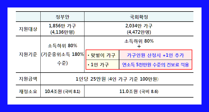 재난지원금 88% 기준, 대상 25만원 확정 from blog.kakaocdn.net 구체적인 지급기준 및 대상자는 국민. Jun 02, 2021 · 與 김성환 전국민 재난지원금, 이르면 휴가철에 1인당 지급 입력 : 가구당 최대 100만원(4인 가족 기준)씩 지급됐던 1차 재난지원금과 달리 개인별 지급을 목표로 내부 논의에 들어간 것으로. 4인 가구 기준 상한액 제한이 없어 5인 가구의 경우 125만 원을 받을 수 있게 된다. 가구당 최대 100만 원을 지급했던 지난해 전 국민 재난지원금과는 달리 1인당 25만원으로 결정됐다. May 03, 2020 · 가구별 지급액수는 다음과 같습니다. 여기에 신용카드 캐시백을 병행해 '전국민 재난지원금'과 동일한 수준의 효과를 내겠다는 것이 정부의 구상이다. 다만, 전국민 지급으로 진행된 1차 재난지원금 사례를 보면 4인 가구 기준 최대 100만원으로 비슷할 것으로 예상됩니다.